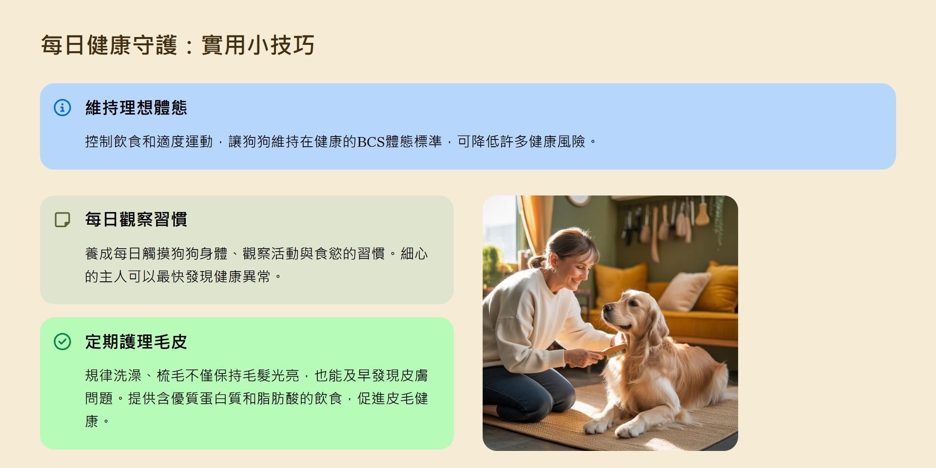 「從體態、毛髮到活力觀察狗狗健康,掌握日常照護關鍵指標」