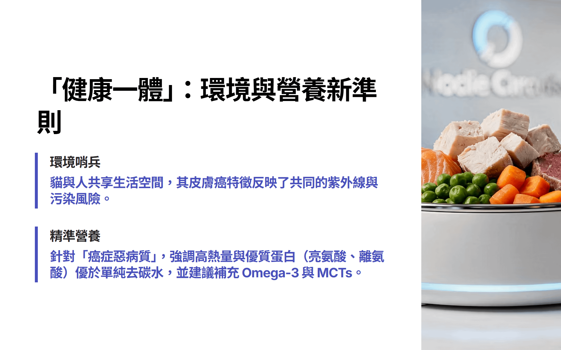 這項《科學》研究進一步強化了「健康一體」 (One Health) 的概念。由於家貓與人類共享生活空間,暴露於相同的環境壓力源(如空氣污染物、室內化學物質及紫外線照射),牠們的癌症發生模式可以作為人類環境致癌風險的早期預警系統。