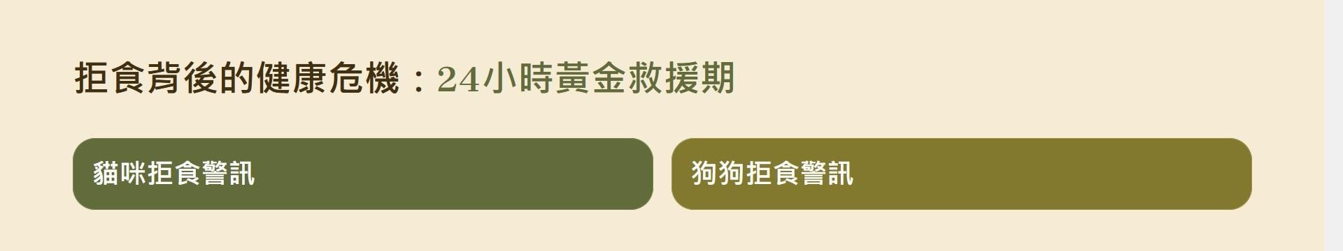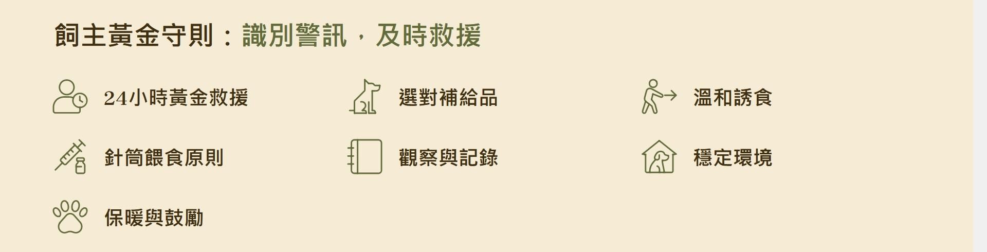 24小時黃金救援:若狗狗或貓咪連續24小時拒食,或24小時以上加上精神不佳、嘔吐腹瀉等症狀,就該盡速找獸醫。