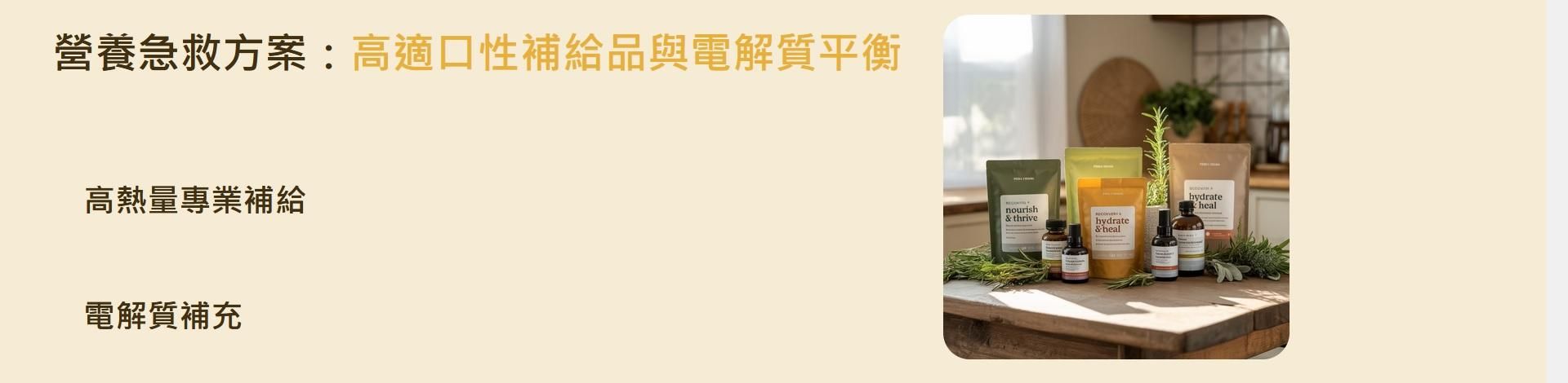 選對補給品:家中備有高熱量補給品(營養膏、處方罐頭)或電解質飲料。有Hill’s a/d、Royal Canin Recovery等處方糊劑;也可自製或購買含鹽糖的口服電解質補充液,以備不時之需。