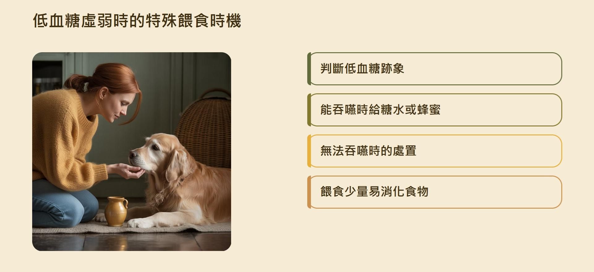 低血糖靈活應對: 當懷疑血糖過低導致虛弱昏迷,立即餵糖水或蜂蜜(能吞嚥時)是特例措施k。但此舉僅為爭取時間,隨後仍要馬上送醫。