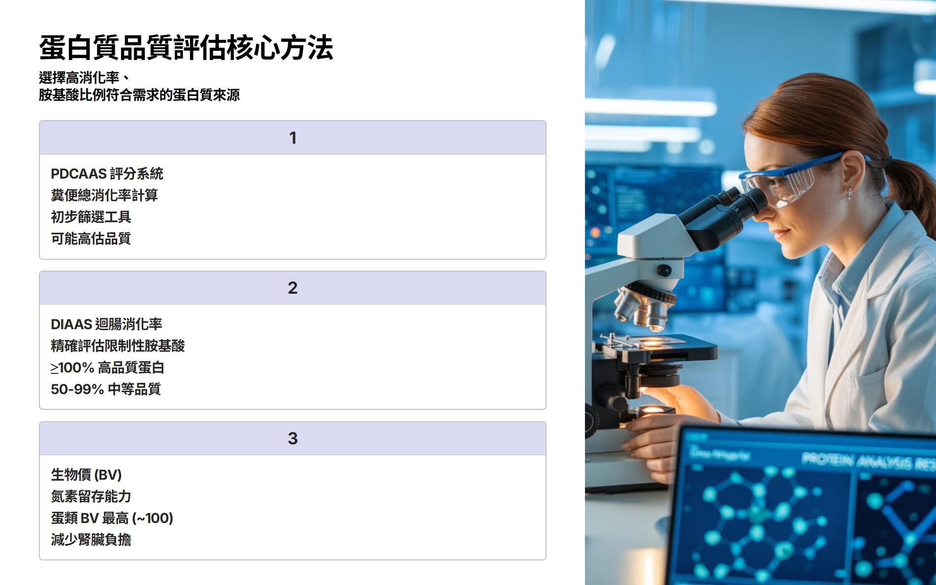 一、蛋白質品質評估方法與實務應用