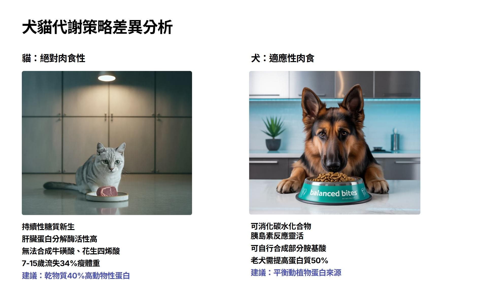 二、犬貓蛋白質代謝策略差異